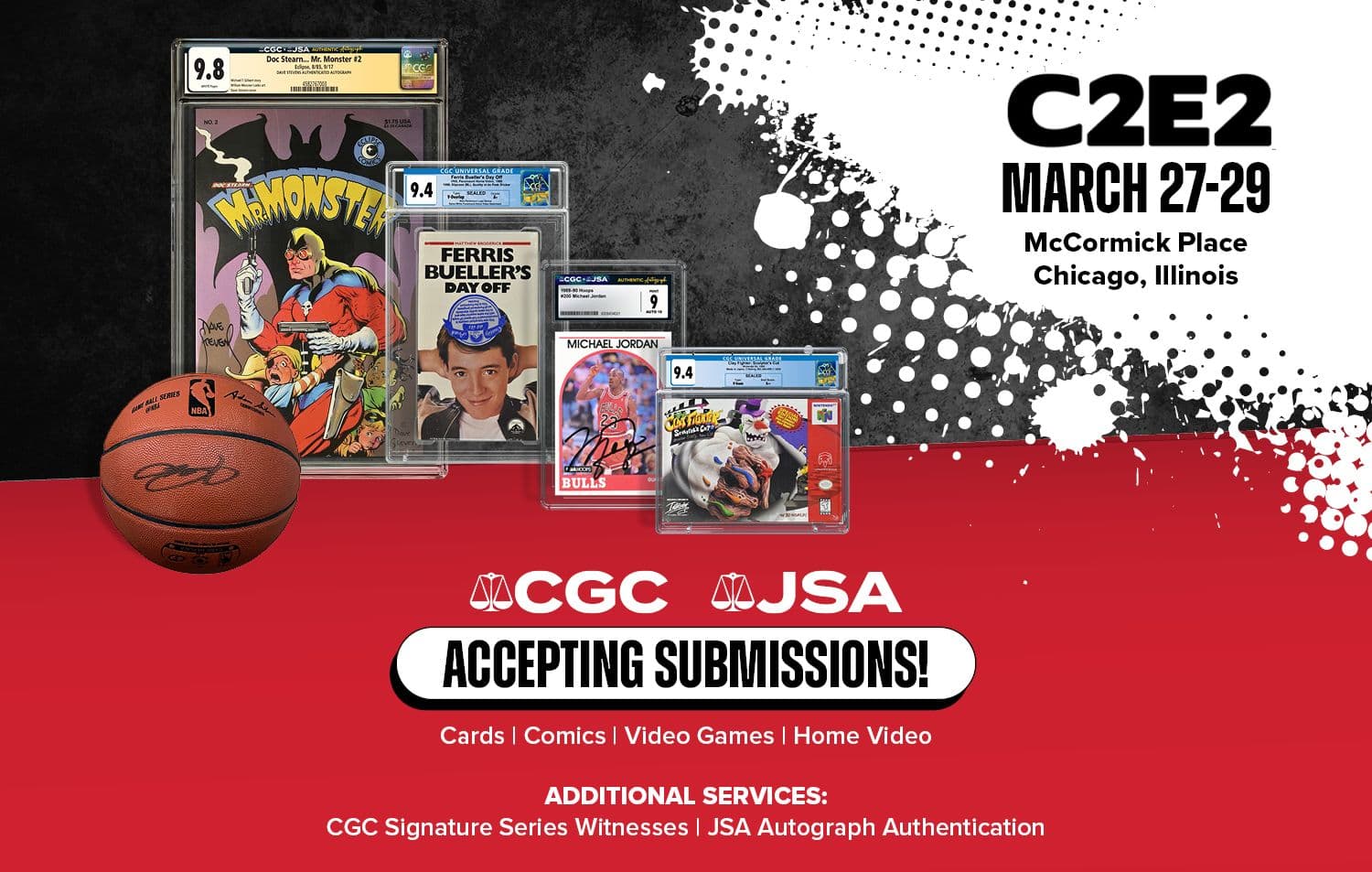 You can submit your collectibles to CGC and JSA at C2E2 in Chicago on March 27-29, 2026! CGC will provide on-site comic book grading, and JSA will provide on-site autograph authentication at the show. CGC Signature Series will also be available at the show.