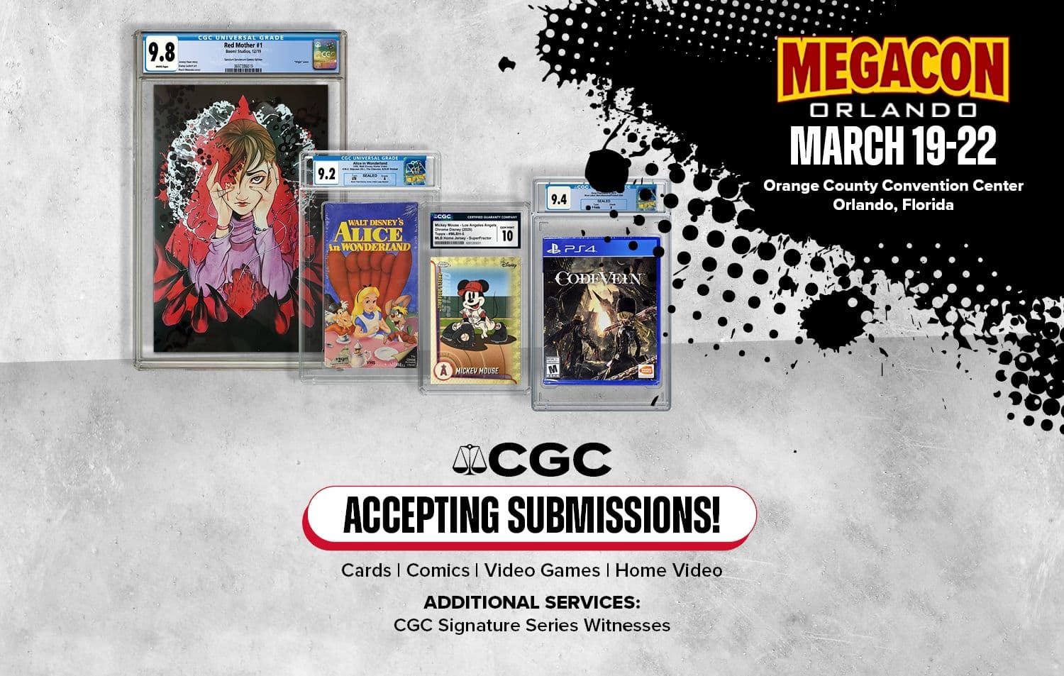 You can submit your comics, cards, video games and home video collectibles to CGC at MegaCon in Orlando, Florida, on March 19-22, 2026!
