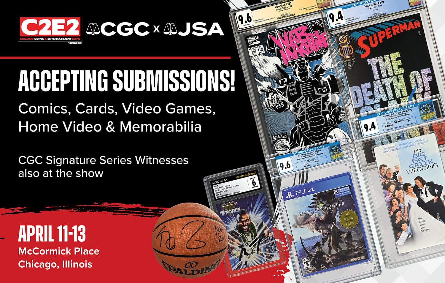 CGC® and JSA® are excited to be accepting submissions at Chicago Comic & Entertainment Expo (C2E2) at the McCormick Place in Chicago, Illinois, on April 11-13, 2025.