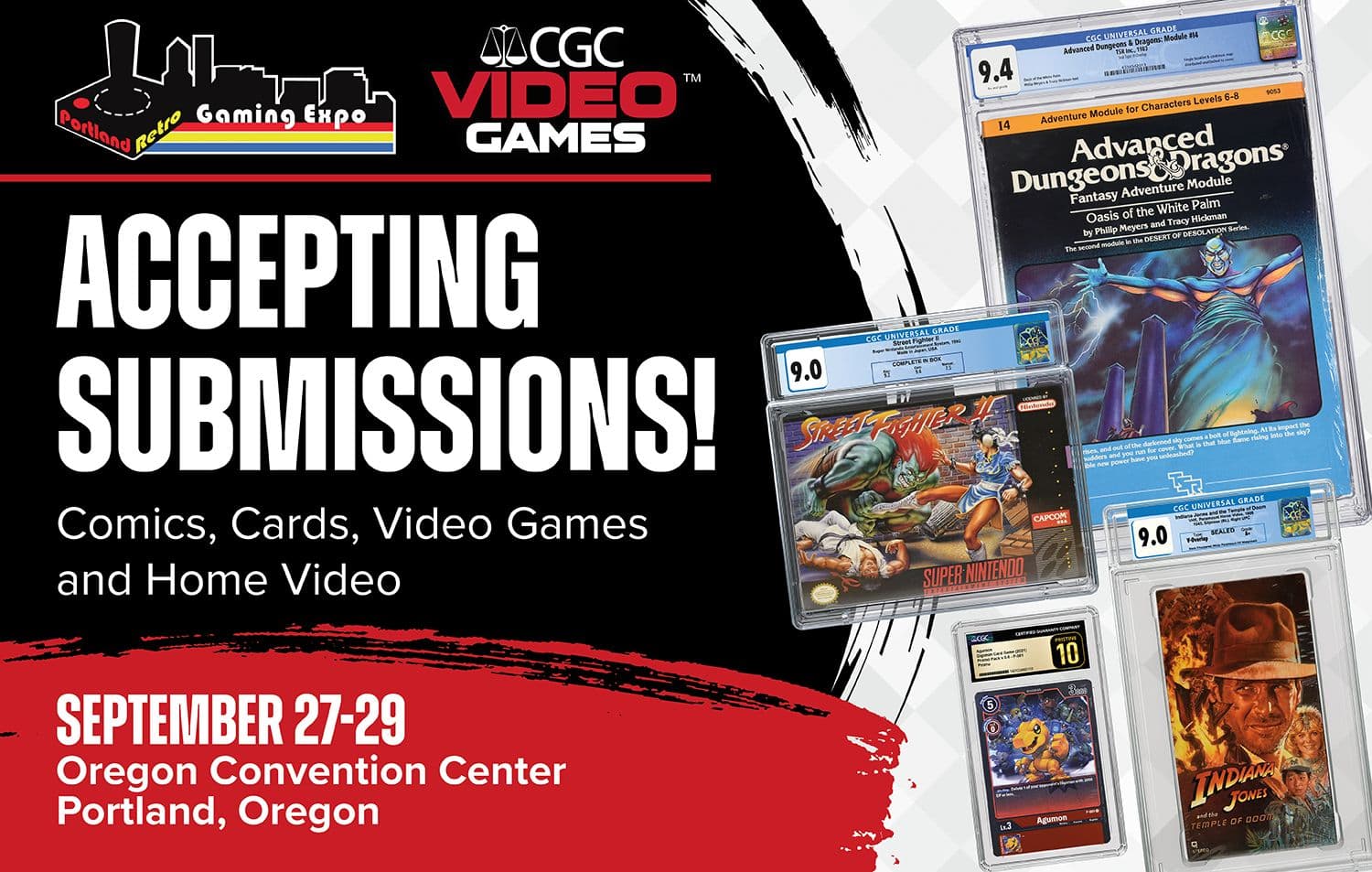 Certified Guaranty Company® (CGC®) is excited to be accepting submissions of comics, cards, video games and home video collectibles at the Portland Retro Gaming Expo, being held at the Oregon Convention Center in Portland, Oregon, on September 27-29, 2024.