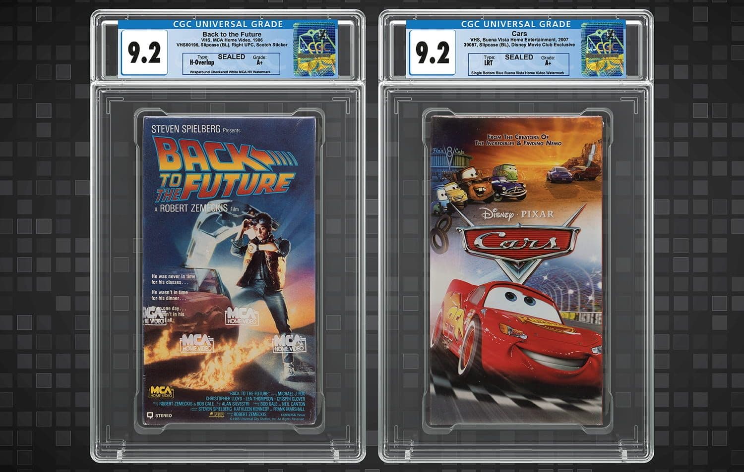 It was just one of the many CGC-certified videocassettes featured in Heritage’s Summer VHS and Home Entertainment Showcase Auction, which ended on August 25, 2023. A sealed Cars VHS, Buena Vista Home Entertainment (2007) graded CGC 9.2 A+ (lot 19048) realized $3,500. Cars was one of the last Disney-Pixar films to be released on VHS and was exclusively available to members of the Disney Movie Club.