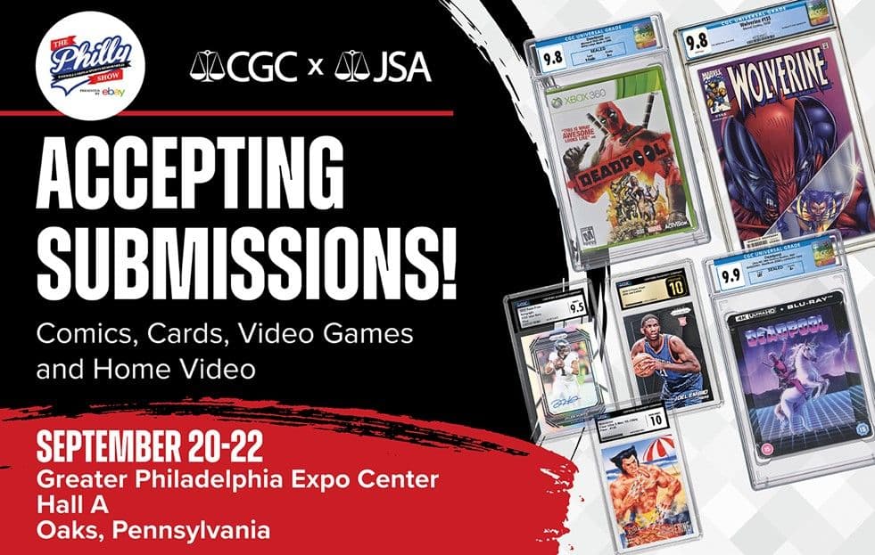 Certified Guaranty Company® (CGC®) and James Spence Authentication® (JSA®) are excited to be accepting submissions of sports cards, TCGs, non-sports cards, comics, magazines, video games and home video collectibles at The Philly Show, being held at the Greater Philadelphia Expo Center – Hall A in Oaks, Pennsylvania, on September 20-22, 2024. Autographed cards and comics are eligible for JSA autograph authentication and CGC grading and encapsulation, and JSA will also be authenticating other types of sports memorabilia.