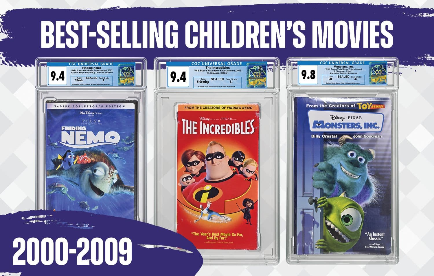 Do you have these blockbuster hits on VHS, DVD or Blu-ray? Consider submitting them to CGC for expert authentication, grading and encapsulation! Our experts help enhance your collection’s value, liquidity and security with professional and impartial grading services. Start today by creating a membership account. All you need is a free CGC account to submit collectibles for grading, but paid members receive discounts and other benefits. Learn more and select your membership level here.
